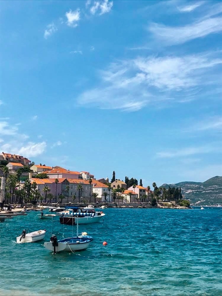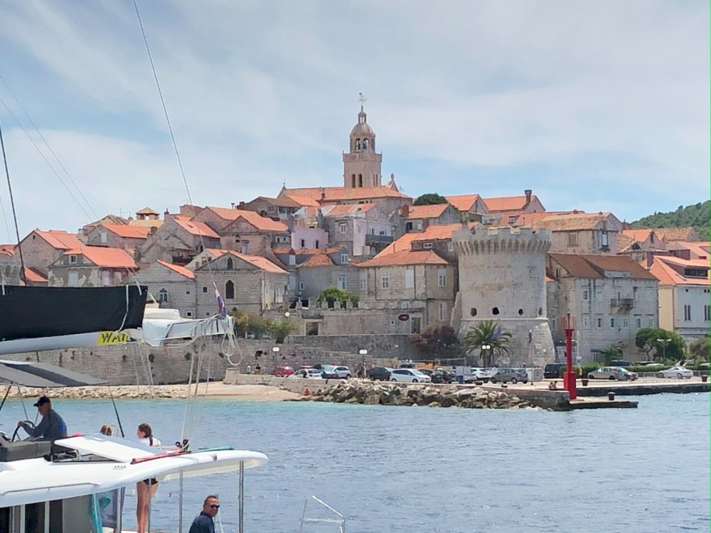 Korćula szigete komppal megközelítve kb. 8 kilométerre fekszik Orebićtől. Az azonos nevű várfallal körülvett olasz hangulatú városka egésznapos programot kínál az odalátogatóknak labirintus-szerű szűk utcáival, csodaszép épületeivel, megannyi éttermével és az utcáit tarkító vásárokkal. Korčula egy igazi mediterrán gyöngyszem, mely lenyűgözi látogatóit történelmi atmoszférájával és varázslatos tájával egyaránt, a város emellett Marco Polo szülőházával is büszkélkedhet. A helyi járatú kishajó menetrend szerint közlekedik, ideális választás azoknak, akik gyalogosan szeretnék bebarangolni az óvárost. Az autós komp pedig kiváló lehetőséget biztosít azoknak, akik a szigeten más városokat és strandokat is szeretnének felfedezni, különösen ajánljuk a lassan mélyülő, Balaton déli partját idéző Lumbarda strandját, mely kisgyermekes családok számára különösen ideális.