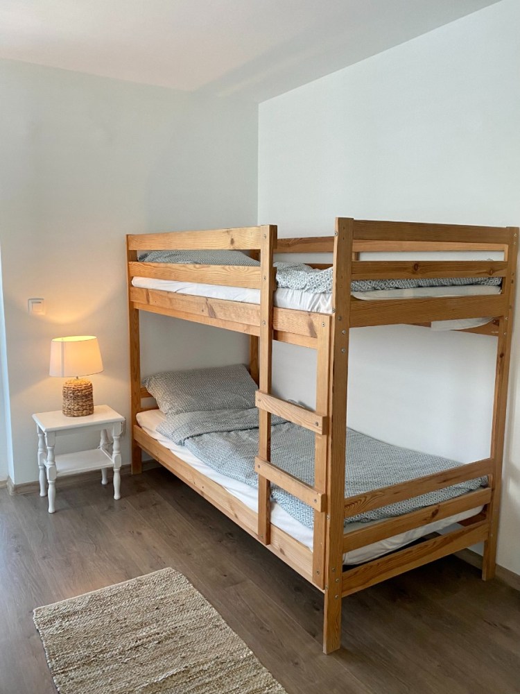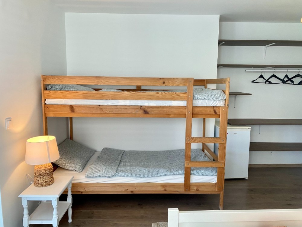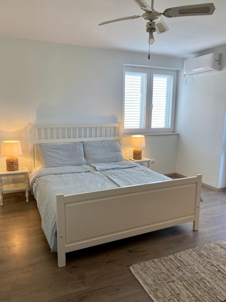 A második félemeleten elhelyezkedő, 19 m2-es 5-ös szoba négy vendéget tud elszállásolni, a franciaágy mellett egy emeletes ágy biztosítja lakói kényelmét. A modern, 4 m2-es fürdőszoba a szobából közvetlenül nyílik. A 12 m2 alapterületű erkélyről csodás kilátás nyílik a ház mögött húzódó hegyvonulatokra és a tengerre egyaránt.